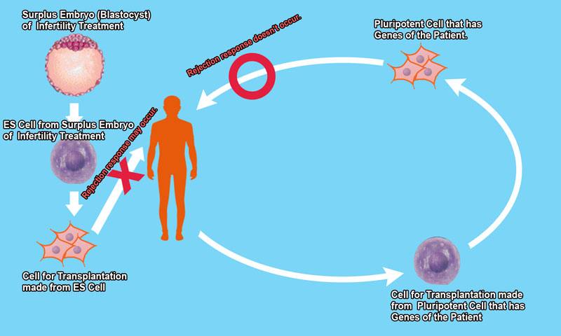 The ethical issue of ES Cells can be by-passed by using Induced pluripotent stem cells. The iPS cell is a pluripotent stem cell which can be generated directly from adult cells, not from human embryos, and in 2006, Shinya Yamanaka and his team in Kyoto University created iPS cells from mouse fibroblasts.