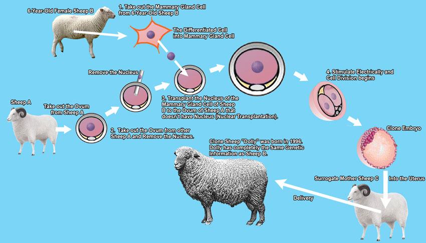 - The stimulated cell divided to became the cloned embryo of Sheep B.
